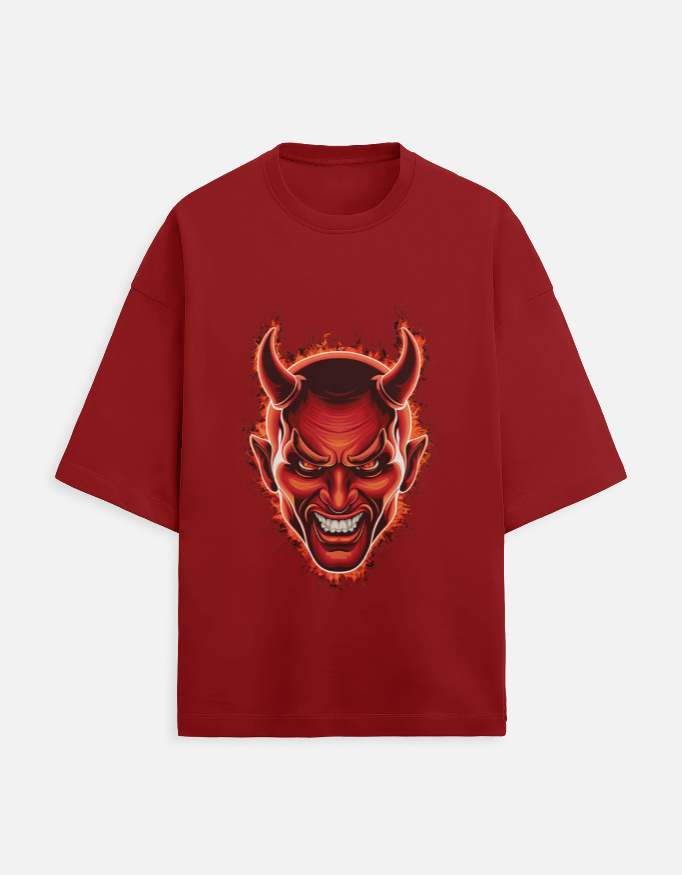 Devil Face – Edgy Red Demon Oversized T-Shirt
