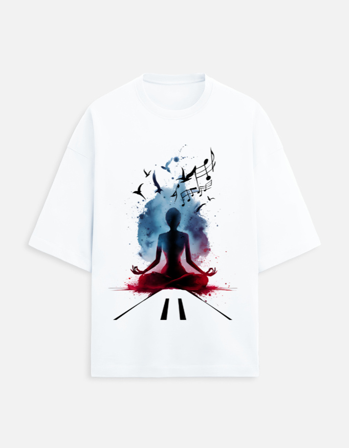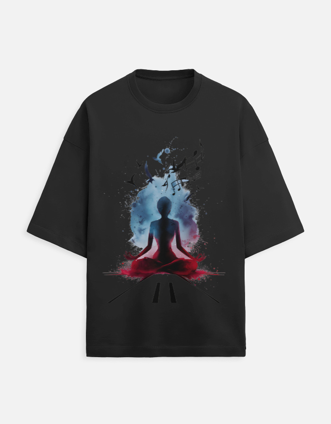 The Meditation Music Art Oversized T-Shirt is designed for those who seek calm, balance, and creative expression. The artwork represents a meditative state where music, thoughts, and freedom flow together.
